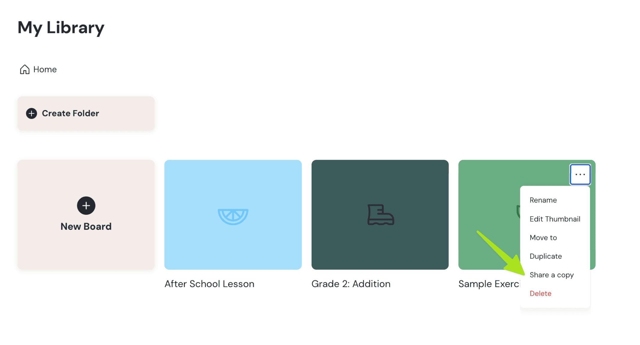 You can easily share a copy of any personal board from your Library so a colleague can use or adapt it for their own teaching.