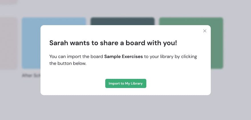 When your colleague opens the link, they’ll see a prompt that says “Import to My Library”. Once they accept, a copy of your board will be added directly to their library.